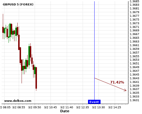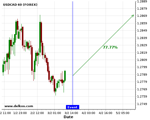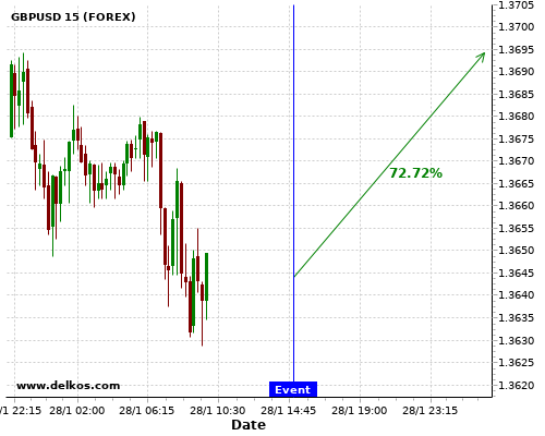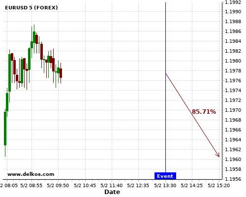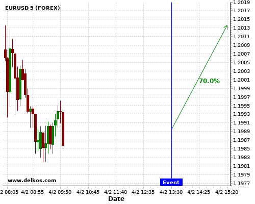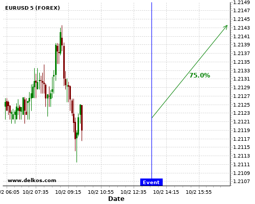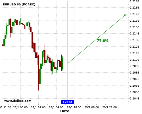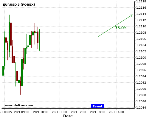 DELKOS 75% probability that EURUSD will trend up on Wednesday 10 Feb at 01:30 PM GMT if the US Inflation Rate YoY number is less than 1.5%.
