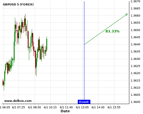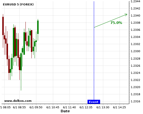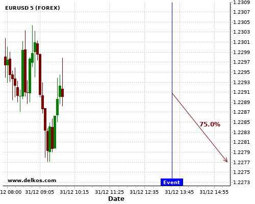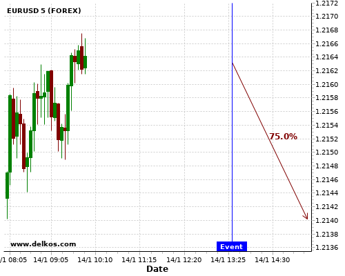 DELKOS 75% probability that EURUSD will trend down on Thursday 14 Jan at 01:30 PM GMT if the US Continuing Jobless Claims number is greater than 5061K.