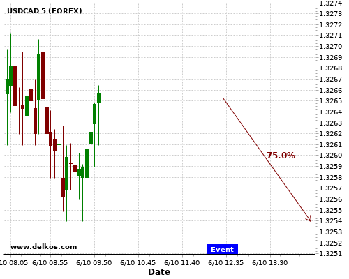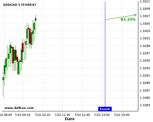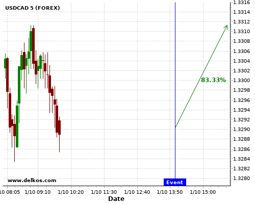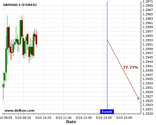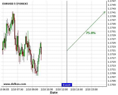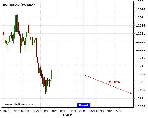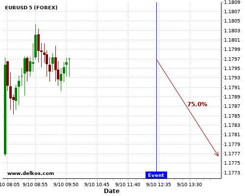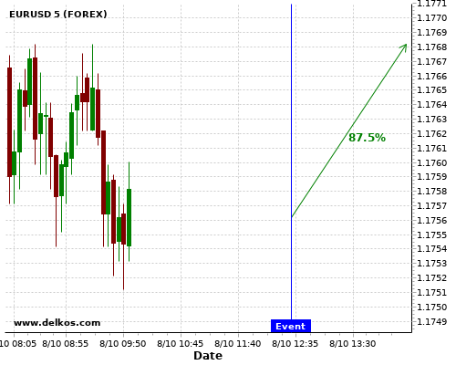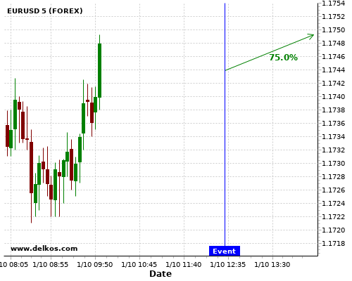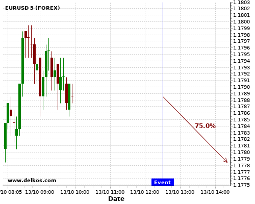 DELKOS 75% вероятность того, что EURUSD будет падать Tuesday 13 Oct at 12:30 PM GMT, если показатель US Inflation Rate YoY будет меньше чем 1.4%.