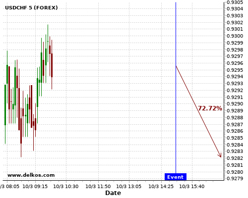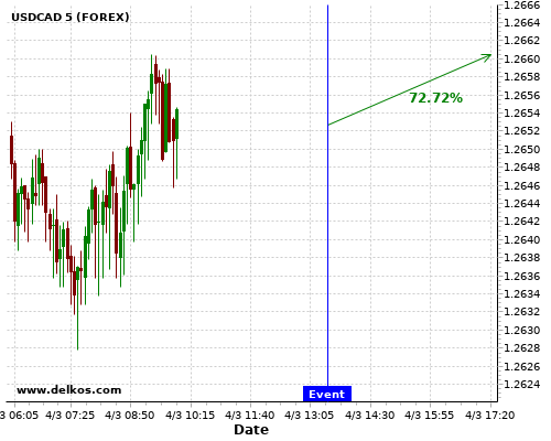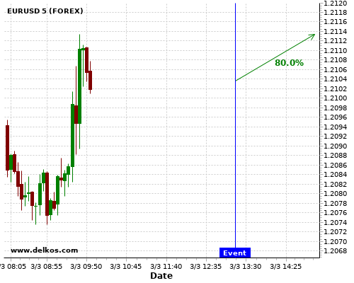 [添加到iCal日历] [添加到Google日历]03/11 01:30 PM GMT将公布最新的US Continuing Jobless Claims数据。 如果该数据小于专家预期,那么USDJPY在消息公布之后的四小时内,将有83.33%的可能性会上涨。这个可能性是根据最近12次公布US Continuing Jobless Claims数据得出的,12次中有12次真实数据小于专家预期,这其中有10次导致USDJPY上涨。过去事件的图片如下:查看预测Thursday 04 Mar at 01:30 PM GMT:Thursday 25 Feb at 01:30 PM GMT:Thursday 18 Feb at 01:30 PM GMT:Thursday 11 Feb at 01:30 PM GMT:Thursday 04 Feb at 01:30 PM GMT:Thursday 21 Jan at 01:30 PM GMT:Thursday 07 Jan at 01:30 PM GMT:Thursday 31 Dec at 01:30 PM GMT:Wednesday 23…