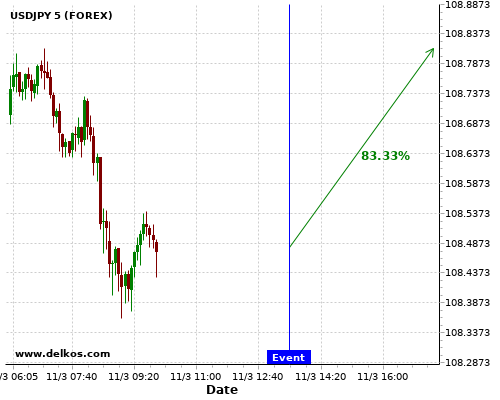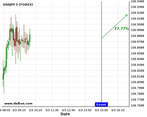 DELKOS 03/11 01:30 PM GMT将公布US Continuing Jobless Claims的数据如果小于专家预期,USDJPY有83.33%的可能性将上涨。