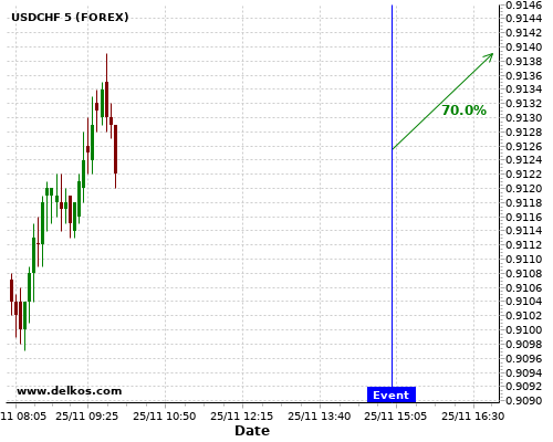 DELKOS 11/25 03:00 PM GMT将公布US New Home Sales的数据如果大于专家预期,USDCHF有70%的可能性将上涨。
