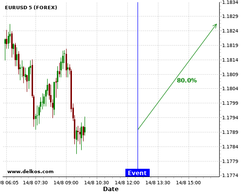 DELKOS 08/14 12:30 PM GMT将公布US Retail Sales MoM的数据如果小于专家预期,EURUSD有80%的可能性将上涨。