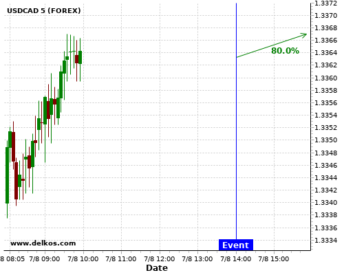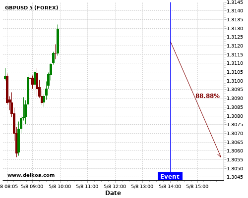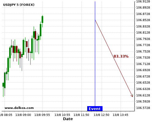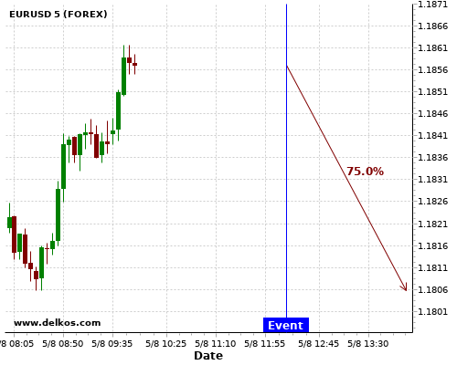 DELKOS 08/14 12:30 PM GMT将公布US Retail Sales MoM的数据如果小于专家预期,EURUSD有80%的可能性将上涨。