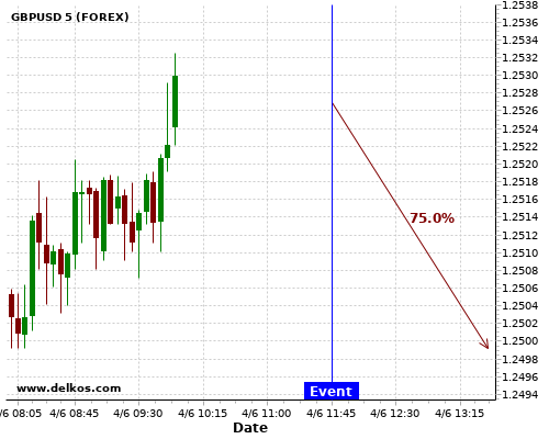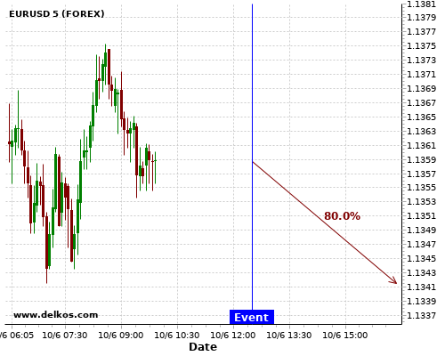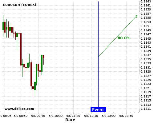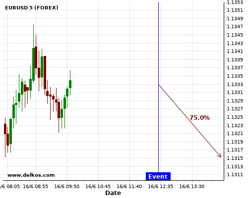 DELKOS 06/16 12:30 PM GMT将公布US Retail Sales MoM的数据如果大于专家预期,EURUSD有75%的可能性将下跌。