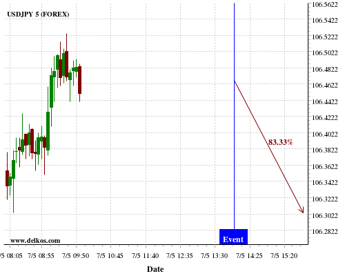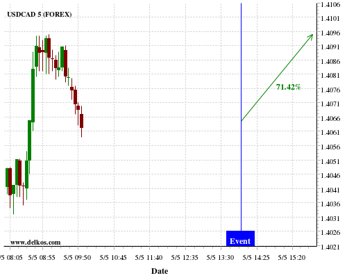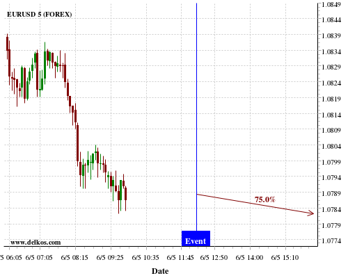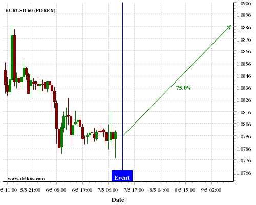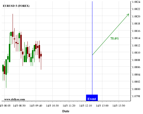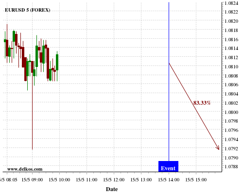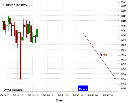 DELKOS 05/19 12:30 PM GMT将公布US Housing Starts的数据如果大于专家预期,EURUSD有85.71%的可能性将下跌。