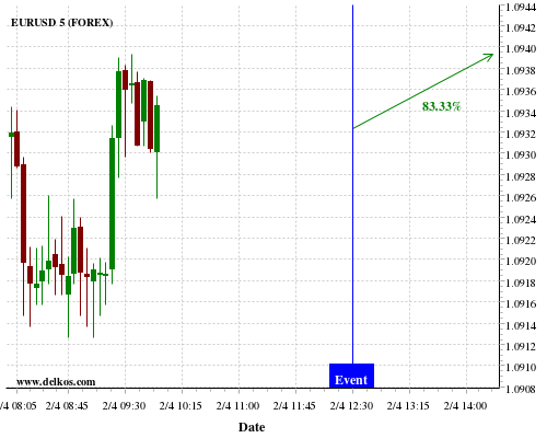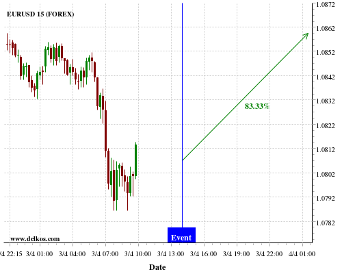 DELKOS 04/03 02:00 PM GMT将公布US ISM Non-Manufacturing PMI的数据如果小于专家预期,EURUSD有83.33%的可能性将上涨。