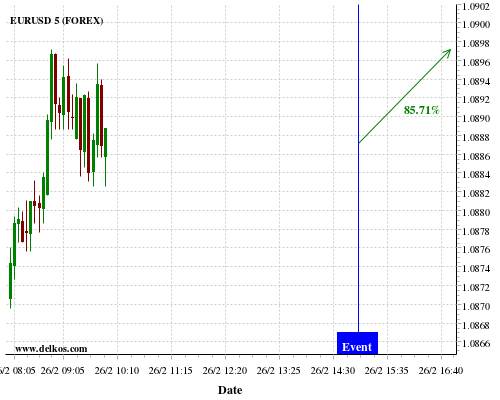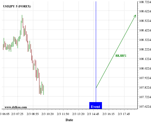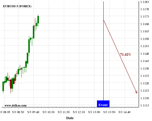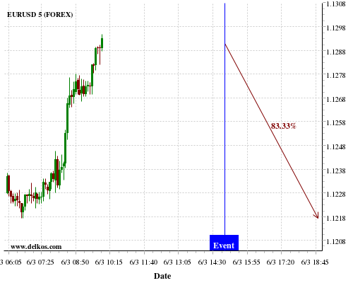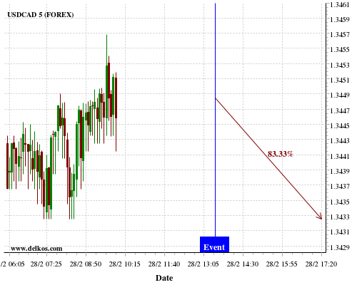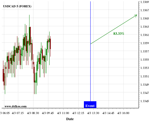 DELKOS 03/06 03:00 PM GMT将公布CA Ivey PMI s.a的数据如果大于专家预期,EURUSD有83.33%的可能性将下跌。