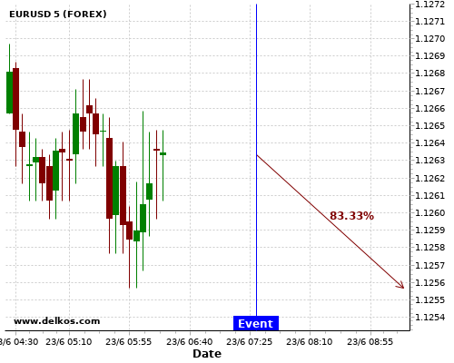 DELKOS 75% probability that NZDUSD will trend down on Tuesday 23 Jun at 02:00 PM GMT if the US New Home Sales number is greater than 0.64M.