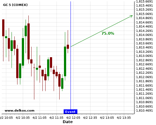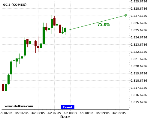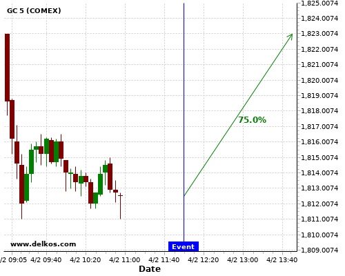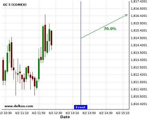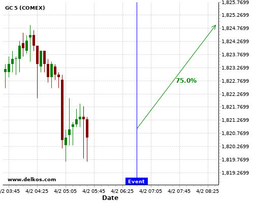 DELKOS 70% probability that GC will trend up on Thursday 04 Feb at 01:30 PM GMT if the US Continuing Jobless Claims number is less than 4700K.