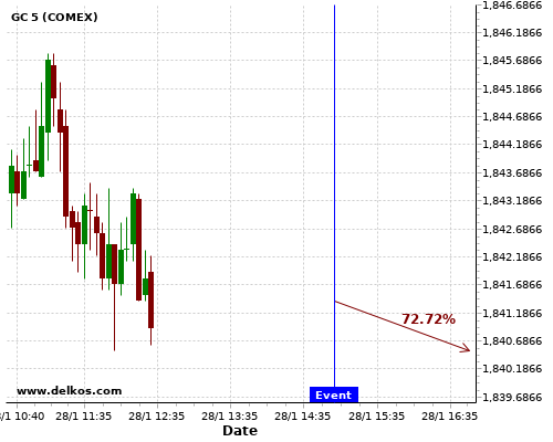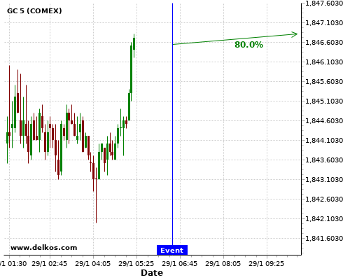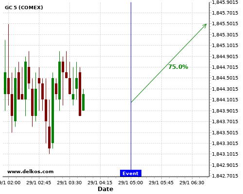 The latest FR GDP Growth Rate QoQ Prel number has been released as -1.3%. There is a 80% probability that GC will trend up for the next few hours.This probability is based on the last 12 FR GDP Growth Rate QoQ Prel events, in which 4 of the last 5 events where the actual number was greater than than the…
