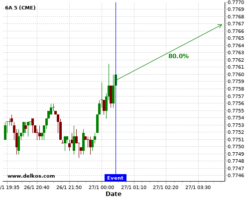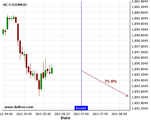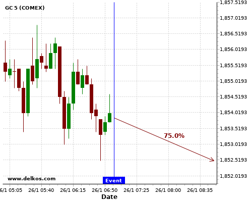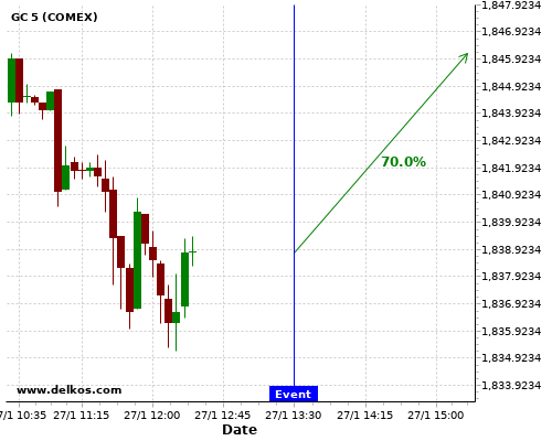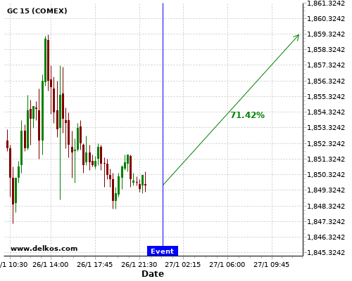 DELKOS 70% probability that GC will trend up on Wednesday 27 Jan at 01:30 PM GMT if the US Durable Goods Orders MoM number is greater than 0.9%.