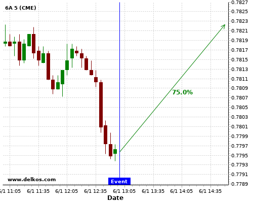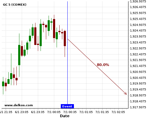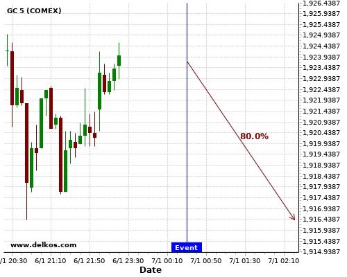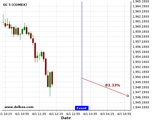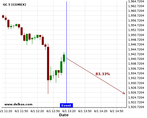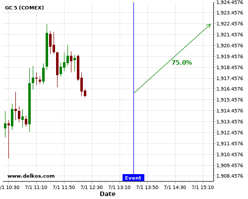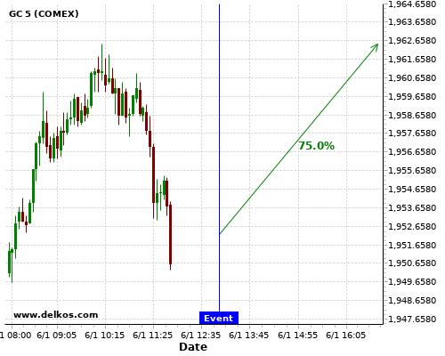 DELKOS 75% probability that GC will trend up on Thursday 07 Jan at 01:30 PM GMT if the US Continuing Jobless Claims number is greater than 5200K.