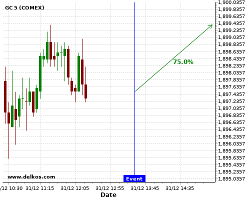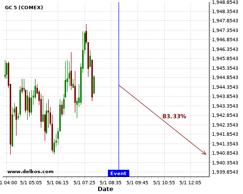 DELKOS 83.33% probability that GC will trend down on Tuesday 05 Jan at 08:55 AM GMT if the DE Unemployment Rate number is less than 6.1%.
