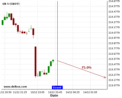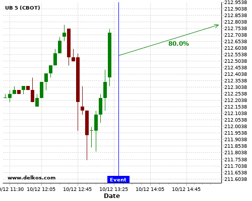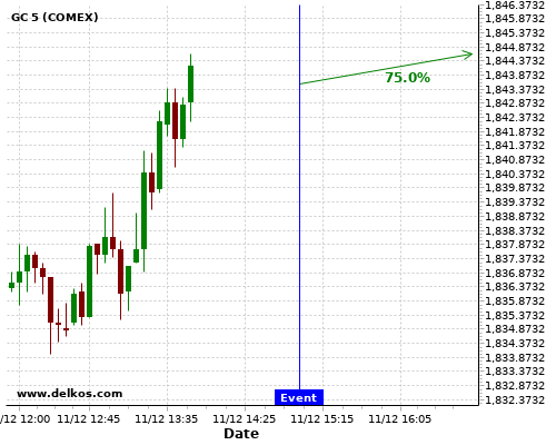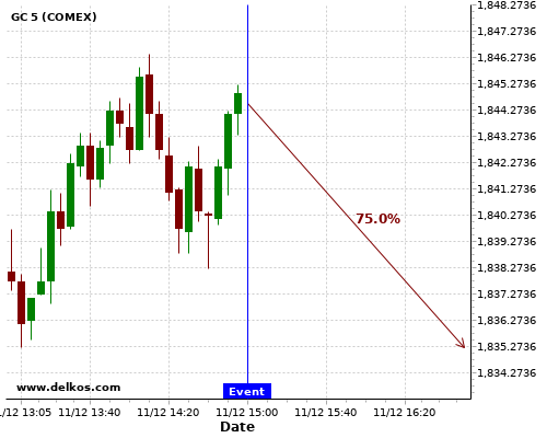 DELKOS 80% probability that GC will trend up on Monday 14 Dec at 10:00 AM GMT if the EMU Industrial Production YoY number is greater than -4.4%.