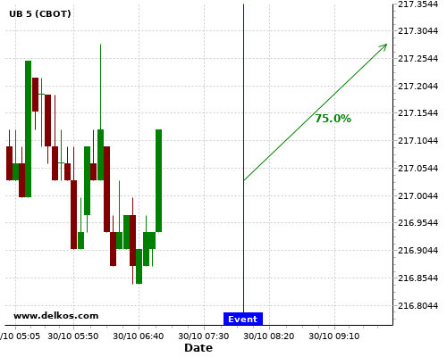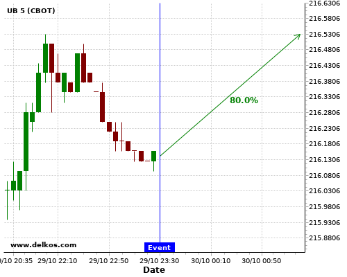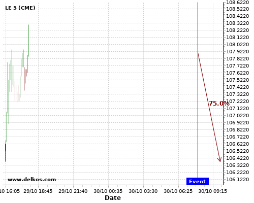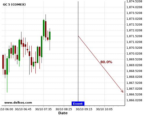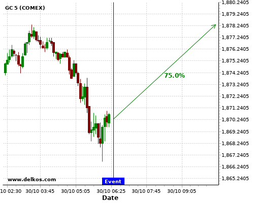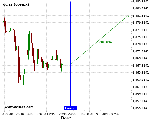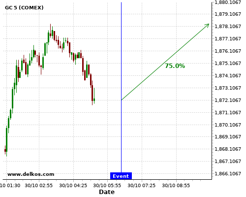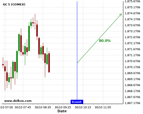 DELKOS 80% probability that GC will trend up on Friday 30 Oct at 10:00 AM GMT if the EMU GDP Growth Rate QoQ Flash number is equal to 9.4%.