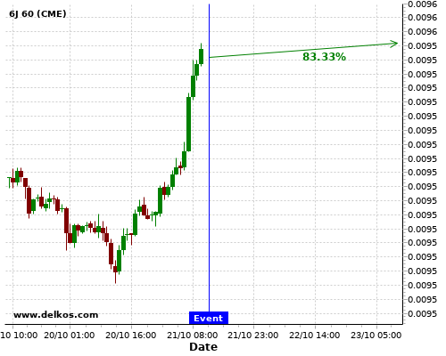 [Add to iCal Calendar] [Add to Google Calendar]This Thursday 22 Oct at 11:01 PM GMT the latest GB Gfk Consumer Confidence number will be released. If the number is greater than than economists' consensus there is a 71.42% probability that 6A will trend down following the news event.This probability is based on the last 12 GB Gfk Consumer Confidence events, in…