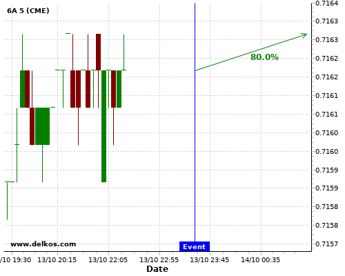 The latest AU Westpac Consumer Confidence Index number has been released as 105. There is a 80% probability that 6A will trend up for the next few hours.This probability is based on the last 12 AU Westpac Consumer Confidence Index events, in which 5 of the last 5 events where the actual number was greater than than the economist consensus…