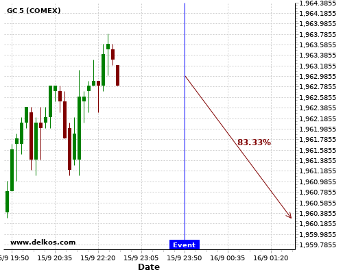 DELKOS 83.33% probability that UB will trend down on Wednesday 16 Sep at 06:00 PM GMT if the US Fed Interest Rate Decision number is equal to 0.25%.