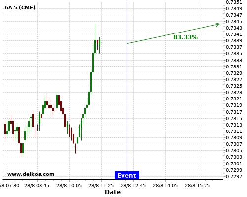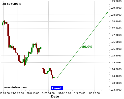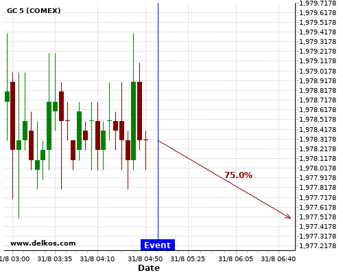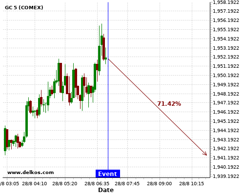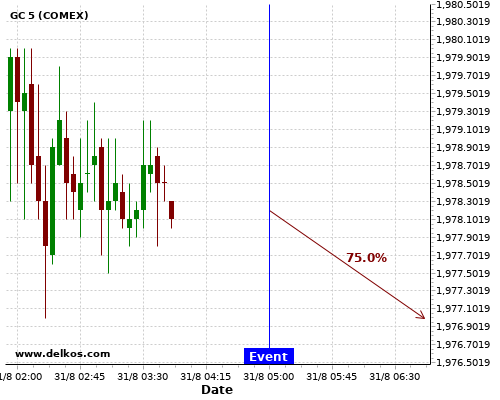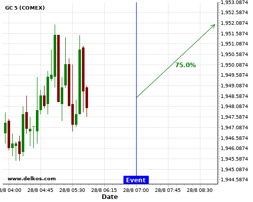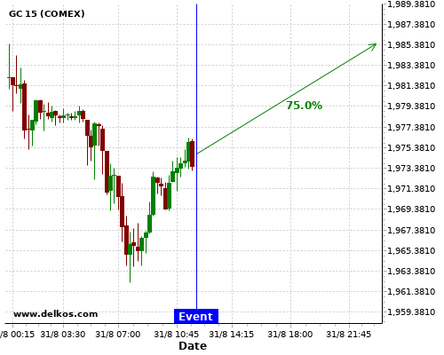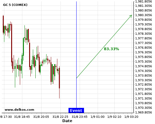 DELKOS 83.33% probability that GC will trend up on Monday 31 Aug at 11:30 PM GMT if the JP Unemployment Rate number is less than 3%.