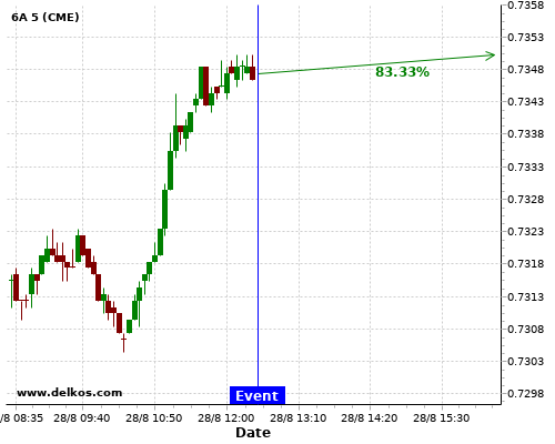 [Add to iCal Calendar] [Add to Google Calendar]This Monday 31 Aug at 11:30 PM GMT the latest JP Unemployment Rate number will be released. If the number is less than than economists' consensus there is a 83.33% probability that GC will trend up following the news event.This probability is based on the last 12 JP Unemployment Rate events, in which 2…