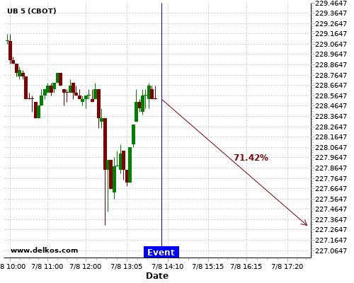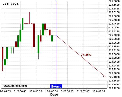 The latest GB Claimant Count Change number has been released as -28.1K. There is a 75% probability that UB will trend down for the next few hours.This probability is based on the last 12 GB Claimant Count Change events, in which 4 of the last 8 events where the actual number was less than than the economist consensus resulted in…