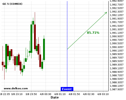 DELKOS 80% probability that UB will trend up on Tuesday 04 Aug at 04:30 AM GMT if the AU RBA Interest Rate Decision number is equal to 0.25%.