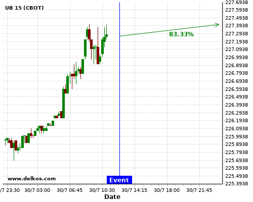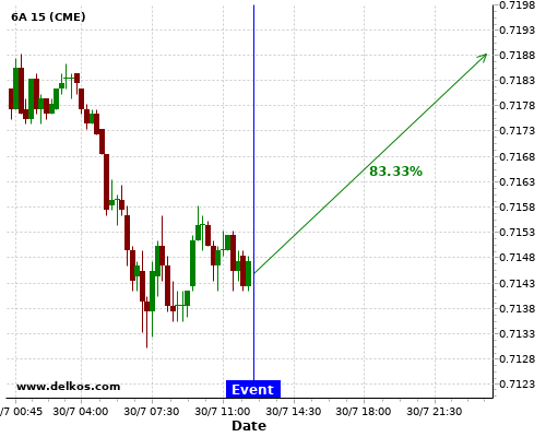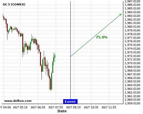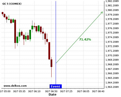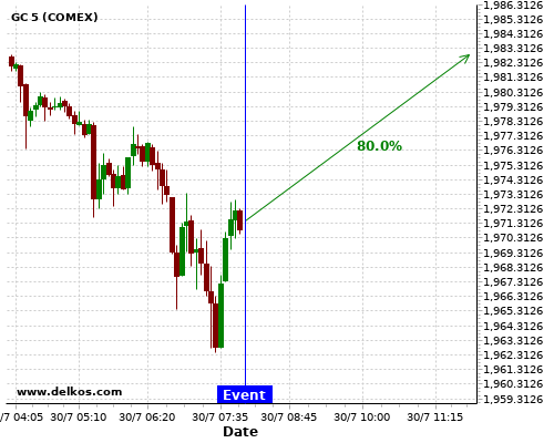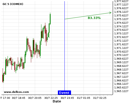 DELKOS 83.33% probability that GC will trend up on Thursday 30 Jul at 11:30 PM GMT if the JP Unemployment Rate number is less than 3.1%.
