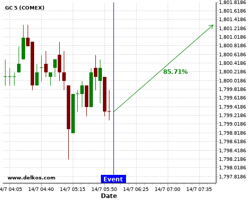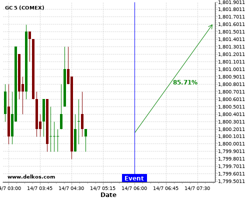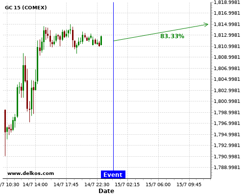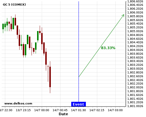 DELKOS 83.33% probability that GC will trend up on Wednesday 15 Jul at 12:30 AM GMT if the AU Westpac Consumer Confidence Index number is greater than 96.