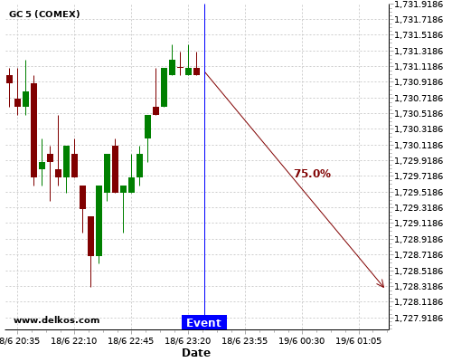 The latest NZ Interest Rate Decision number has been released as 0.25%. There is a 77.77% probability that GC will trend down for the next few hours.This probability is based on the last 12 NZ Interest Rate Decision events, in which 7 of the last 9 events where the actual number was equal to than the economist consensus resulted in…