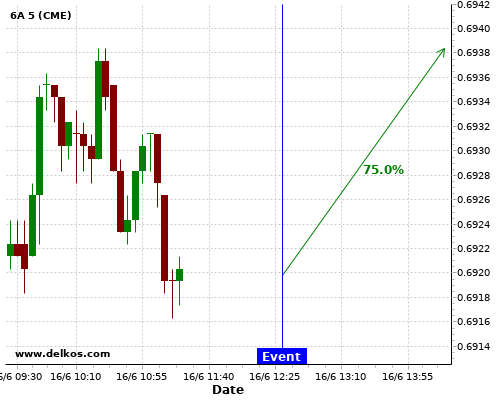 The latest AU Employment Change number has been released as -227.7K. There is a 75% probability that GC will trend down for the next few hours.This probability is based on the last 12 AU Employment Change events, in which 3 of the last 4 events where the actual number was less than than the economist consensus resulted in an down…