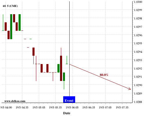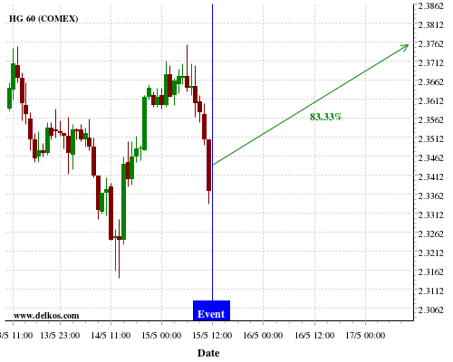 [Add to iCal Calendar] [Add to Google Calendar]This Tuesday 19 May at 12:30 PM GMT the latest US Housing Starts number will be released. If the number is greater than than economists' consensus there is a 85.71% probability that GC will trend down following the news event.This probability is based on the last 12 US Housing Starts events, in which 6…