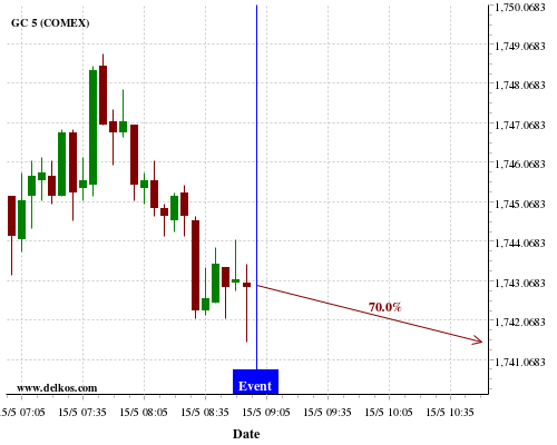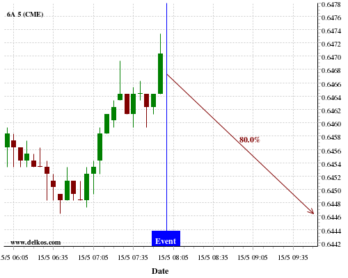 DELKOS 75% probability that 6A will trend up on Friday 15 May at 12:30 PM GMT if the US Retail Sales MoM number is greater than -12%.
