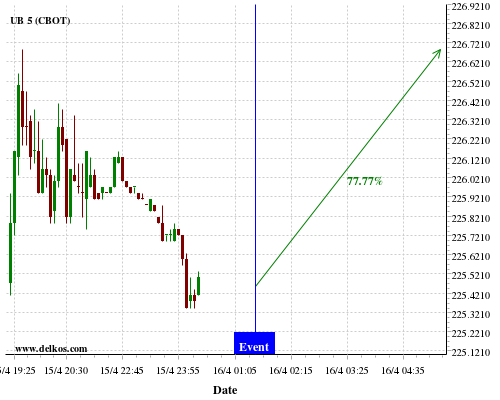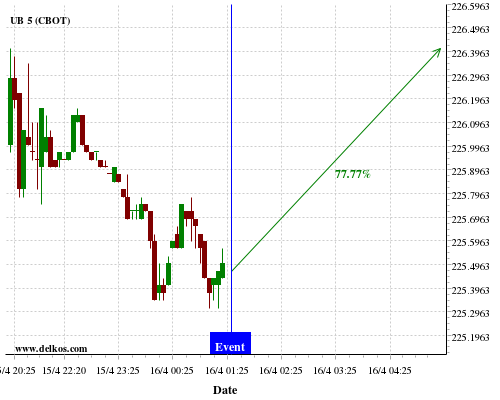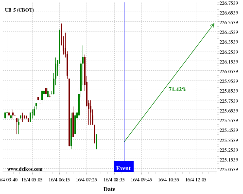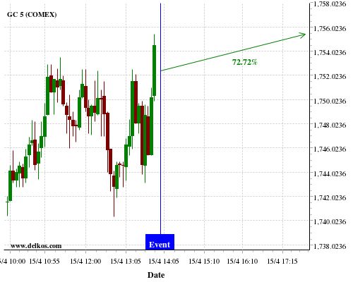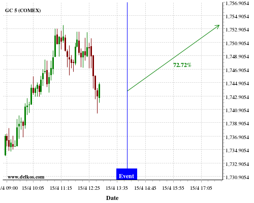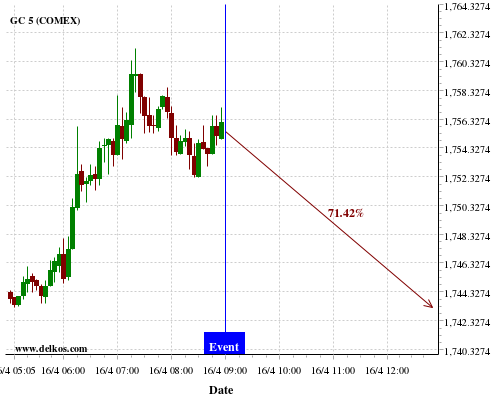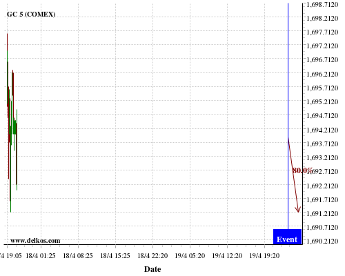 DELKOS 80% probability that GC will trend down on Sunday 19 Apr at 11:50 PM GMT if the JP Balance of Trade number is less than ¥420B.