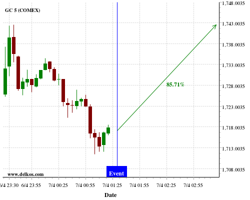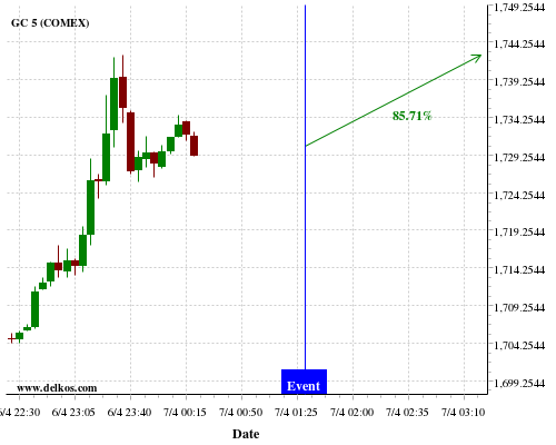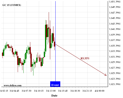 DELKOS 72.72% probability that GC will trend up on Thursday 09 Apr at 06:00 AM GMT if the DE Balance of Trade number is greater than â¬18.2B.