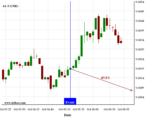 [Add to iCal Calendar] [Add to Google Calendar]This Thursday 09 Apr at 06:00 AM GMT the latest DE Balance of Trade number will be released. If the number is greater than than economists' consensus there is a 72.72% probability that GC will trend up following the news event.This probability is based on the last 12 DE Balance of Trade events, in…