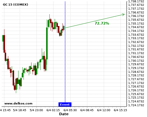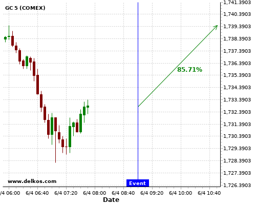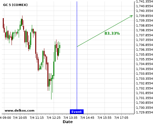 DELKOS 83.33% probability that GC will trend up on Wednesday 07 Apr at 02:00 PM GMT if the CA Ivey PMI s.a number is greater than 60.5.