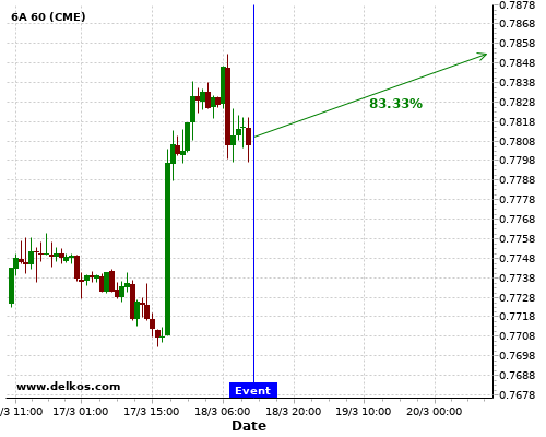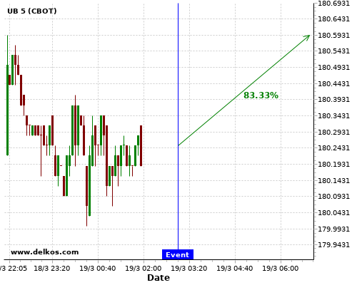 DELKOS 83.33% probability that UB will trend up on Friday 19 Mar at 03:00 AM GMT if the JP BoJ Interest Rate Decision number is equal to -0.1%.