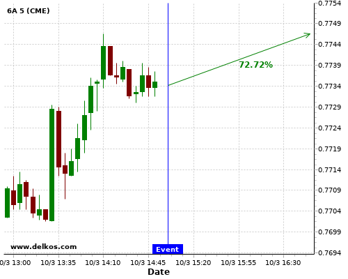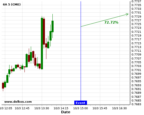 The latest CA BoC Interest Rate Decision number has been released as 0.25%. There is a 72.72% probability that 6A will trend up for the next few hours.This probability is based on the last 12 CA BoC Interest Rate Decision events, in which 8 of the last 11 events where the actual number was equal to than the economist consensus…