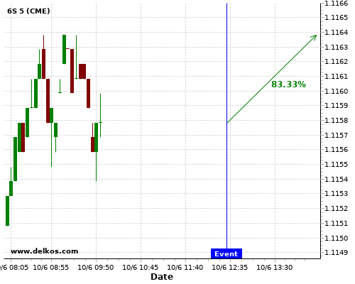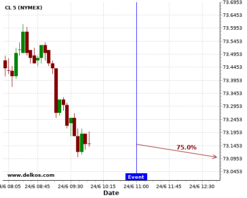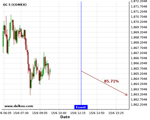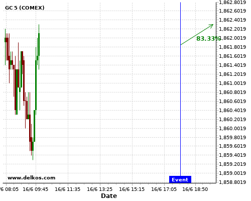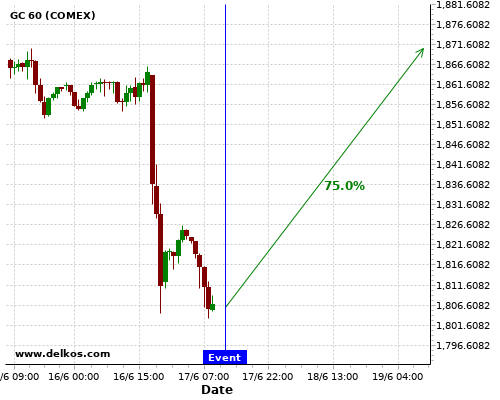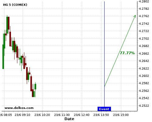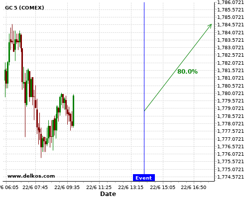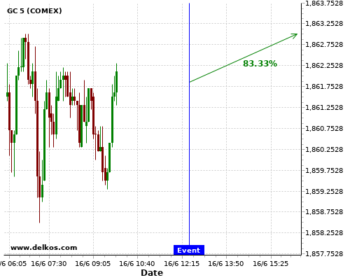 DELKOS 71.42% probability that GC will trend up on Thursday 24 Jun at 12:30 PM GMT if the US Durable Goods Orders MoM number is greater than 2.8%.