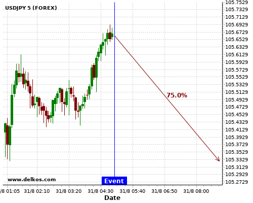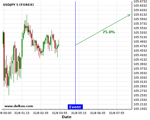 последний JP Unemployment Rate номер Был выпущен как 2.9. есть 83.33% вероятность что AUDUSD будет иметь тенденцию вверх течение следующих нескольких часов.Эта вероятность основывается на последних 12 JP Unemployment Rate события, в котором 5 из последних 6 события, где фактическое номер было меньше чем чем экономист консенсус привел тенденция вверх для AUDUSD.Вот образы последних событий новостей:Просмотр прогнозаThursday 30 Jul at…