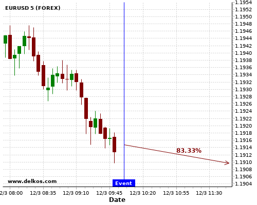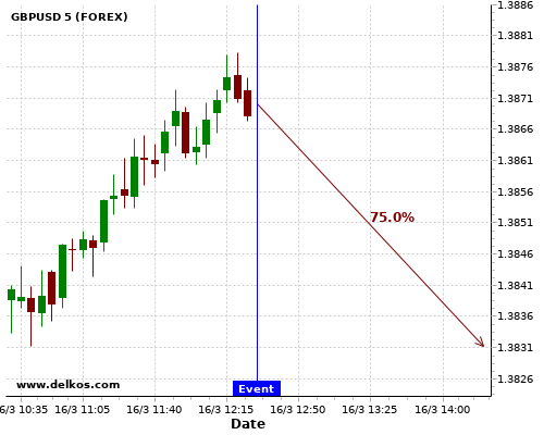 DELKOS ПОСЛЕДНИЕ НОВОСТИ: 75% вероятность что GBPUSD будет иметь тенденцию вниз течение следующих нескольких часов.