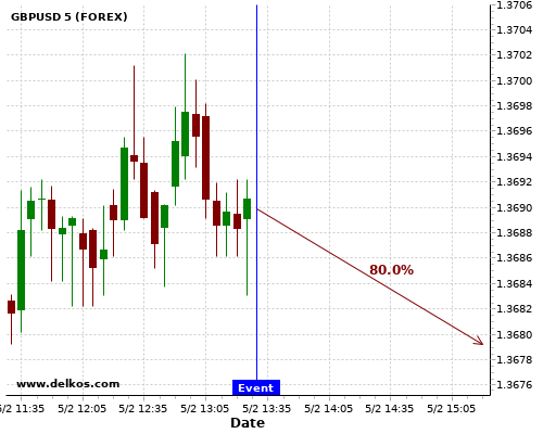 DELKOS ПОСЛЕДНИЕ НОВОСТИ: 80% вероятность что GBPUSD будет иметь тенденцию вниз течение следующих нескольких часов.