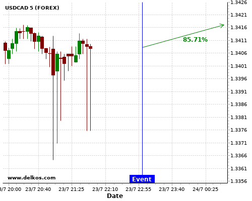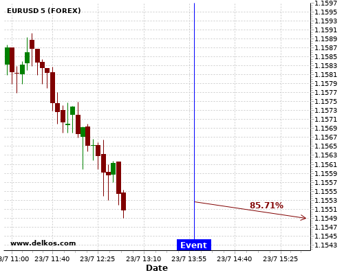 [Add to iCal Calendar] [Add to Google Calendar]This Monday 27 Jul at 08:00 AM GMT the latest DE Ifo Business Climate number will be released. If the number is less than than economists' consensus there is a 80% probability that USDCHF will trend up following the news event.This probability is based on the last 12 DE Ifo Business Climate events, in…