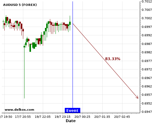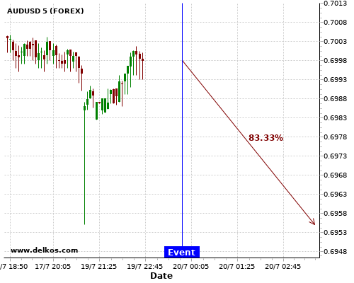 TradersNews 83.33% probability that EURUSD will trend down on Wednesday 22 Jul at 02:00 PM GMT if the US Existing Home Sales number is less than 4.78M.