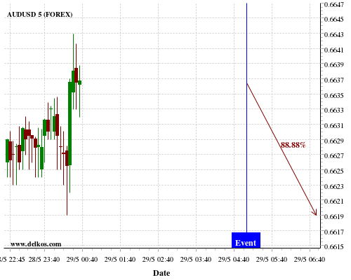 [Add to iCal Calendar] [Add to Google Calendar]This Wednesday 03 Jun at 01:30 AM GMT the latest AU GDP Growth Rate QoQ number will be released. If the number is greater than than economists' consensus there is a 75% probability that AUDUSD will trend up following the news event.This probability is based on the last 12 AU GDP Growth Rate QoQ…
