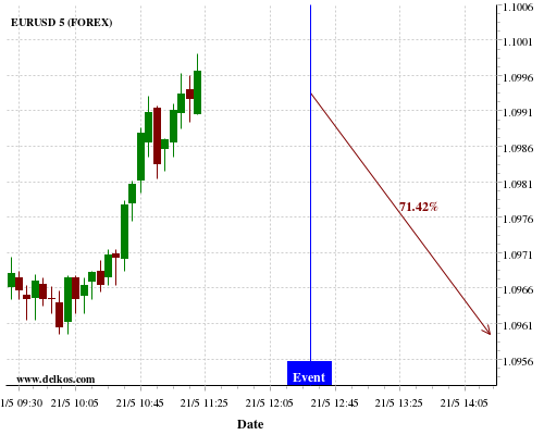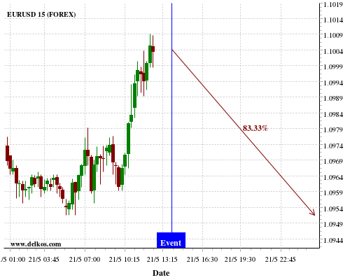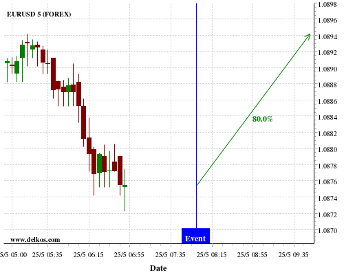 [Add to iCal Calendar] [Add to Google Calendar]This Monday 25 May at 08:00 AM GMT the latest DE Ifo Business Climate number will be released. If the number is greater than than economists' consensus there is a 80% probability that EURUSD will trend up following the news event.This probability is based on the last 12 DE Ifo Business Climate events, in…