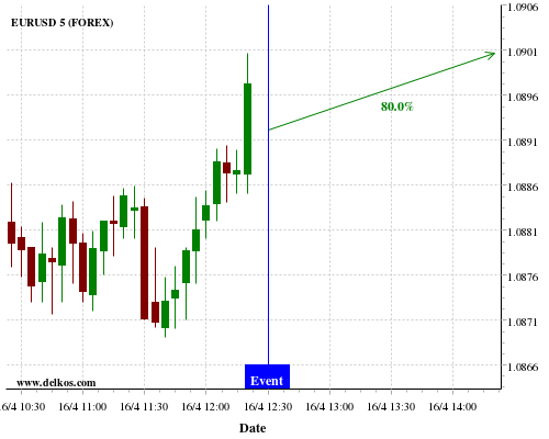 [Add to iCal Calendar] [Add to Google Calendar]This Tuesday 21 Apr at 02:00 PM GMT the latest US Existing Home Sales number will be released. If the number is less than than economists' consensus there is a 83.33% probability that EURUSD will trend down following the news event.This probability is based on the last 12 US Existing Home Sales events, in…