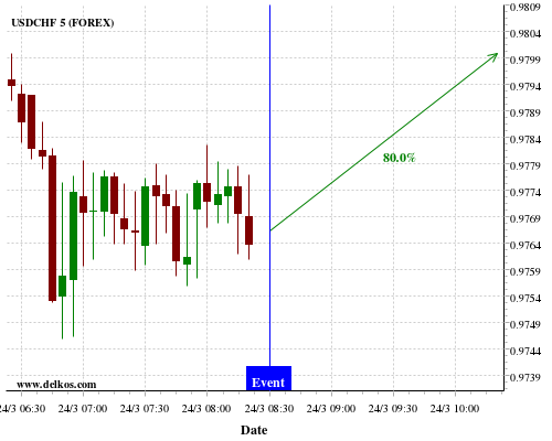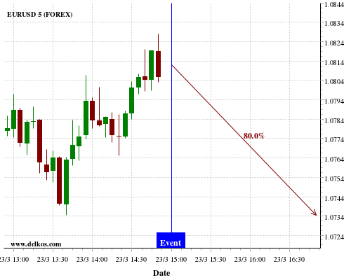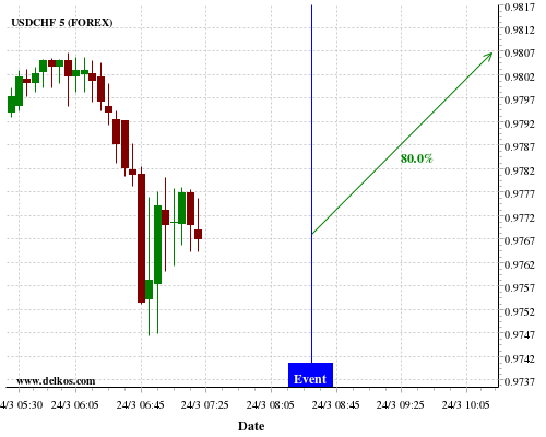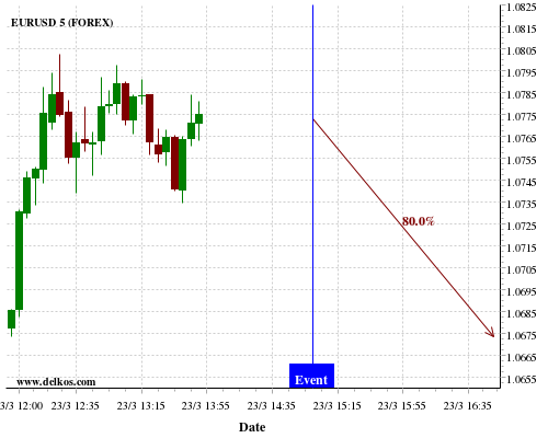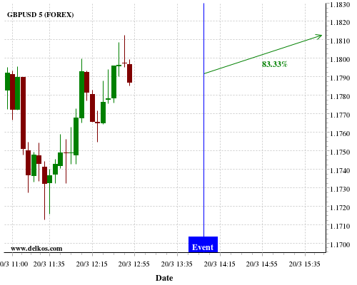 [Add to iCal Calendar] [Add to Google Calendar]This Tuesday 24 Mar at 02:00 PM GMT the latest US New Home Sales number will be released. If the number is greater than than economists' consensus there is a 75% probability that GBPUSD will trend down following the news event.This probability is based on the last 12 US New Home Sales events, in…