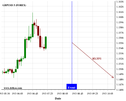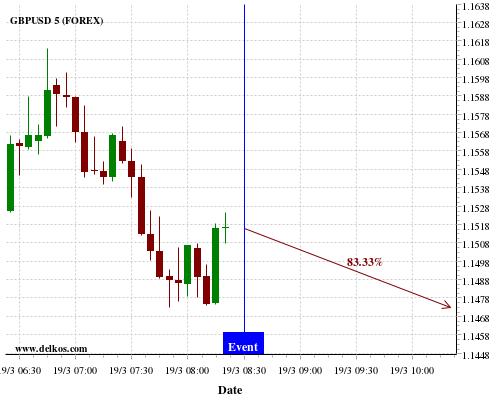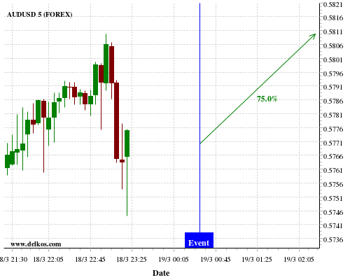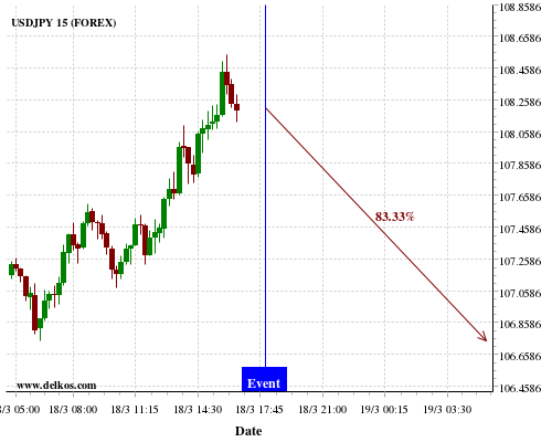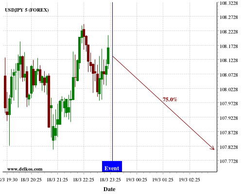 [Add to iCal Calendar] [Add to Google Calendar]This Thursday 19 Mar at 12:30 PM GMT the latest US Philadelphia Fed Manufacturing Index number will be released. If the number is greater than than economists' consensus there is a 75% probability that EURUSD will trend down following the news event.This probability is based on the last 12 US Philadelphia Fed Manufacturing Index…
